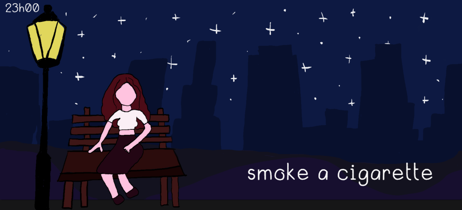 smoke cigarettes as you receive text messages and think about your life.